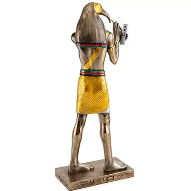 Cada detalhe desta escultura foi meticulosamente trabalhado, refletindo a rica cultura e espiritualidade do Antigo Egito. A presença de Thoth em sua casa ou espaço de trabalho pode ajudar a promover um ambiente de harmonia e clareza mental. Além disso, ele é associado à cura e à justiça, fazendo dele um excelente aliado para aqueles que buscam resolver conflitos ou encontrar soluções para problemas.